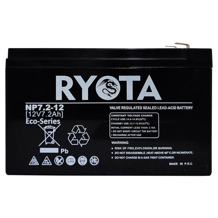 باتریهای ریوتا که در شرکت بینالمللی RYOTA Power تولید میشوند، به خاطر کیفیت ساخت بالا و دوام شارژ و ایمنی بالا، گزینه ای ایدهآل برای استفاده در سیستمهای حساس و روزمره محسوب میشوند. باتری سیلداسید (Sealed Lead Acid) 12 ولت 7.2 آمپرساعت RYOTA با ساختار بدون نیاز به نگهداری (Maintenance-Free) و ضد نشت و صفحات AGM داخلی طراحی و ساخته شده که اطمینان را بالا میبرد. باتری ریوتا مدل NP7.2-12 برای مصارف متنوعی (مثل: سیستمهای UPS، دوربینهای مداربسته، سیستمهای ایمنی، چراغهای اضطراری، دستگاهها پزشکی و آزمایشگاهی، اسباب بازیهای برقی و وسایل نقلیه کوچک) مناسب است. باتریهای ریوتا با طراحی مستحکم، عملکرد مطمئن و قیمت مناسب، انتخابی عالی محسوب میشوند. این باتری نه تنها نیازهای انرژی شما را به طور پایدار تأمین میکند، بلکه با طول عمر بالا و قابلیت شارژ مجدد، هزینههای شما را در بلند مدت کاهش میدهد. هر چند این باتری نیز همانند سایر باتریها با توجه به نوع نگهداری و نحوه استفاده میتواند عمر متغیر داشته باشد.