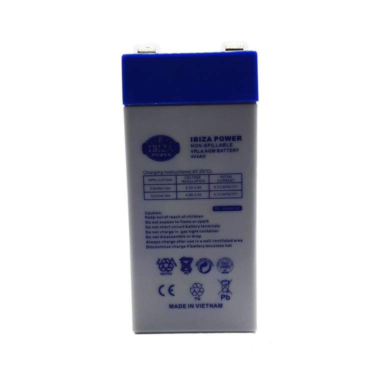 باتری یو پی اس 4 ولت 4 آمپر ساعت ایبیزا مدل IB-4V4Ah ساخت کشور ویتنام می باشد و از جمله باتری های پرکاربرد است که از آن می توان در باطری ترازو، دزدگیر قابل شارژ، آسانسور،ماشین شارژی ،ویلچر برقی، ماشین شارژی، موتور برقی ، دوربین های مدار بسته ، درب پارکینگ ، سیستم های حفاظتی ، UPS ، سانترال و باتری بکاپ سیستم های اعلام سرقت و حریق ,باتری یو پی اس ، باتری درب های اتوماتیک ، باتری موتورهای کرکره ای ، باتری سیستم های صوت و … استفاده کرد.