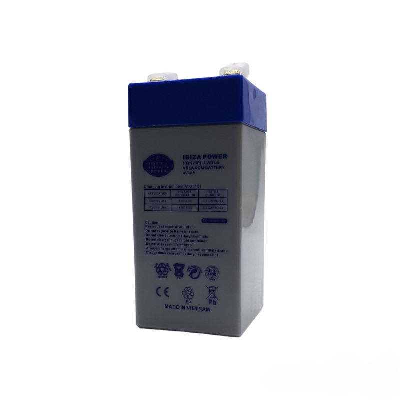 باتری یو پی اس 4 ولت 4 آمپر ساعت ایبیزا مدل IB-4V4Ah ساخت کشور ویتنام می باشد و از جمله باتری های پرکاربرد است که از آن می توان در باطری ترازو، دزدگیر قابل شارژ، آسانسور،ماشین شارژی ،ویلچر برقی، ماشین شارژی، موتور برقی ، دوربین های مدار بسته ، درب پارکینگ ، سیستم های حفاظتی ، UPS ، سانترال و باتری بکاپ سیستم های اعلام سرقت و حریق ,باتری یو پی اس ، باتری درب های اتوماتیک ، باتری موتورهای کرکره ای ، باتری سیستم های صوت و … استفاده کرد.